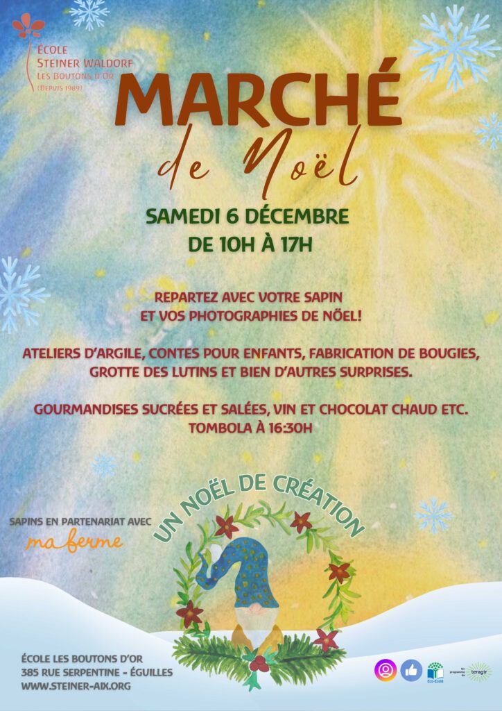 Cette année notre marché sera sur le thème « Un Noel De Création ». La commission fête a apporté une attention particulière à la créativité, aux métiers artisanaux et à leur savoir faire et proposera des créations artisanales inspirées de la pédagogie Steiner-Waldorf ainsi que des ateliers créatifs.